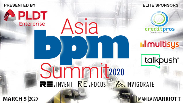 See what is ahead at Asia BPM Summit 2020 on Thursday, March 5 at the Manila Marriott. Title Sponsor: PLDT Enterprise. Elite Sponsor: Global CreditPros, Multisys Technologies and Talkpush.