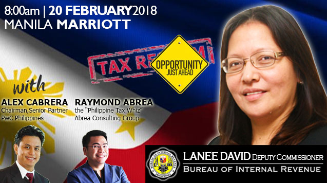 Many businesses have a crisis mentality toward the tax reform legislation widely known as TRAIN. They should not. Hear Lanee David, Deputy Commissioner, describe how you can take advantage of the new Tax Reform for Acceleration and Inclusion law and get the final updates on how BIR will implement it. Lanee is the reform-minded governments primary proponent of technology innovations at BIR. Being launched at this special event, will be the official website of the Seal of Honesty (SOH) Certification Program of the Bureau of Internal Revenue (BIR), in partnership with CSR Philippines. The program will finally get rid of the dreaded annual BIR Audit for your business!!! Also, hear about the Mobile App for online filing and payment being launched. Following her presentation will be a panel session joined by Alex Cabrera, Chairman and Senior Partner of PwC Philippines, and moderated by Mon Abrea, known to most as the "Philippine Tax Wiz."