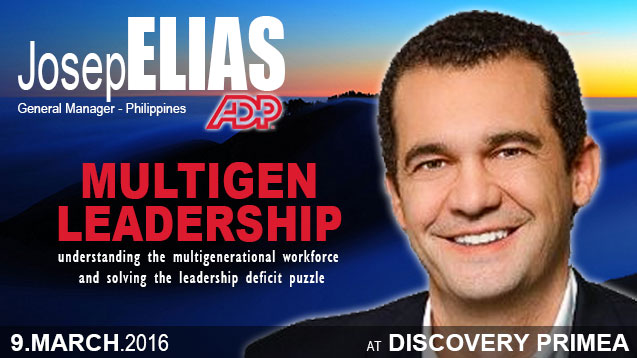 Today’s leaders are usually leading 4 generations of employees each with very different needs and motivations. Most managers spend a large of their time trying to figure out how to get people working in harmony. The tactic often used by many managers is to blame the young generation for not being like the older generation, yielding less than stellar outcomes. Successful results are possible once people understand what motivates each group. Once each group begins to respect the unique talents of the others, high levels of achievement follow quickly. Join us to hear **Josep Elias**, General Manager of **ADP Philippines**, describe how to lead a Multi-Generational Workforce and transform your organization to one of trust and maximum business value.
