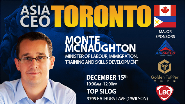 Minister Monte McNaughton wants to get Filipinos into high-demand careers. Asia CEO Forum Toronto features Monte McNaughton, Minister of Labour, Immigration, Training and Skills Development for Ontario, Canada's largest province.
