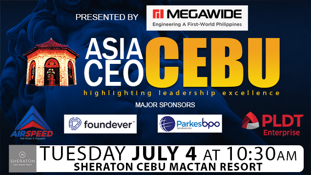 Be with us in the Visayas region for ASIA CEO CEBU 2023, presented by MEGAWIDE, for a 5-star luncheon on Tuesday, July 4 at the stunning Sheraton Cebu Mactan Resort. Major Sponsors are Airspeed, Foundever, Parkes BPO Solutions and PLDT Enterprise.